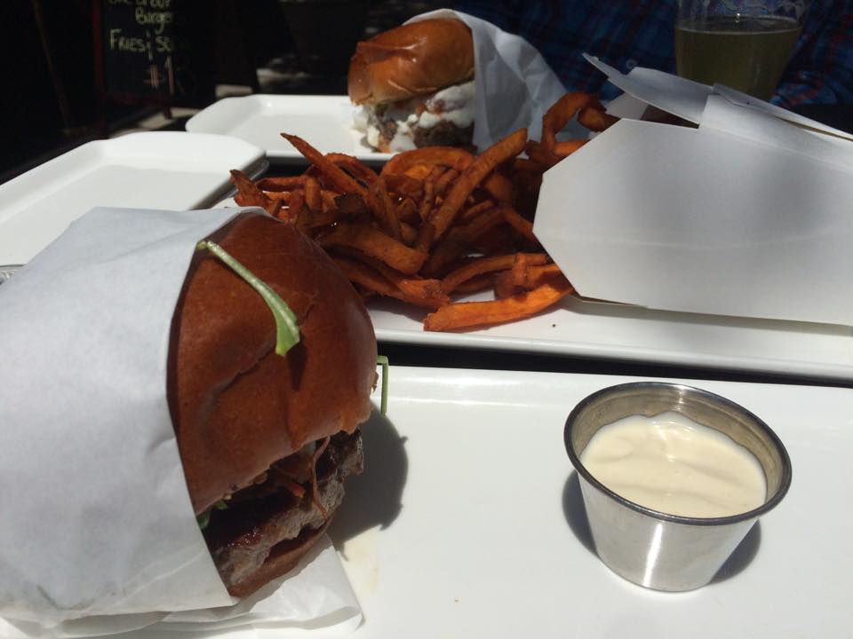 Because one burger is not enough to qualify as a “binge,” I went to another of Yelp’s Burger Binge week spots for lunch with a friend. 25 Degrees had a great burger special for $5 when they were usually $13. Although I noticed while there that they do a lunch special that’s $13 for a burger, fries, and a beer. I’ll be back! This time I got a Specialty #1(Arugula, Thousand Island, Bacon, Mindoro Blue, Fontina Cheese) and sweet potato fries with a garlic aioli dipping sauce. Not a bad way to spend lunch!