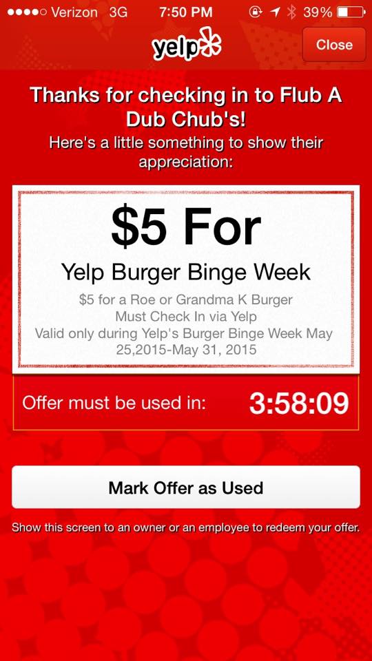 This week was Yelp’s “Burger Binge” week and several delicious Chicago burger joints had $5 specials. Perhaps the best special was at Flub a Dub Chubs, where I got a ridiculously good burger (the “Grandma K” burger had a pretzel bun, goat cheese, and bacon), fries, and a drink for $5. Normally that would’ve been at least $15. You may have missed this year’s Burger Binge week, but follow Yelp Chicago on Twitter for more local Chicago events.