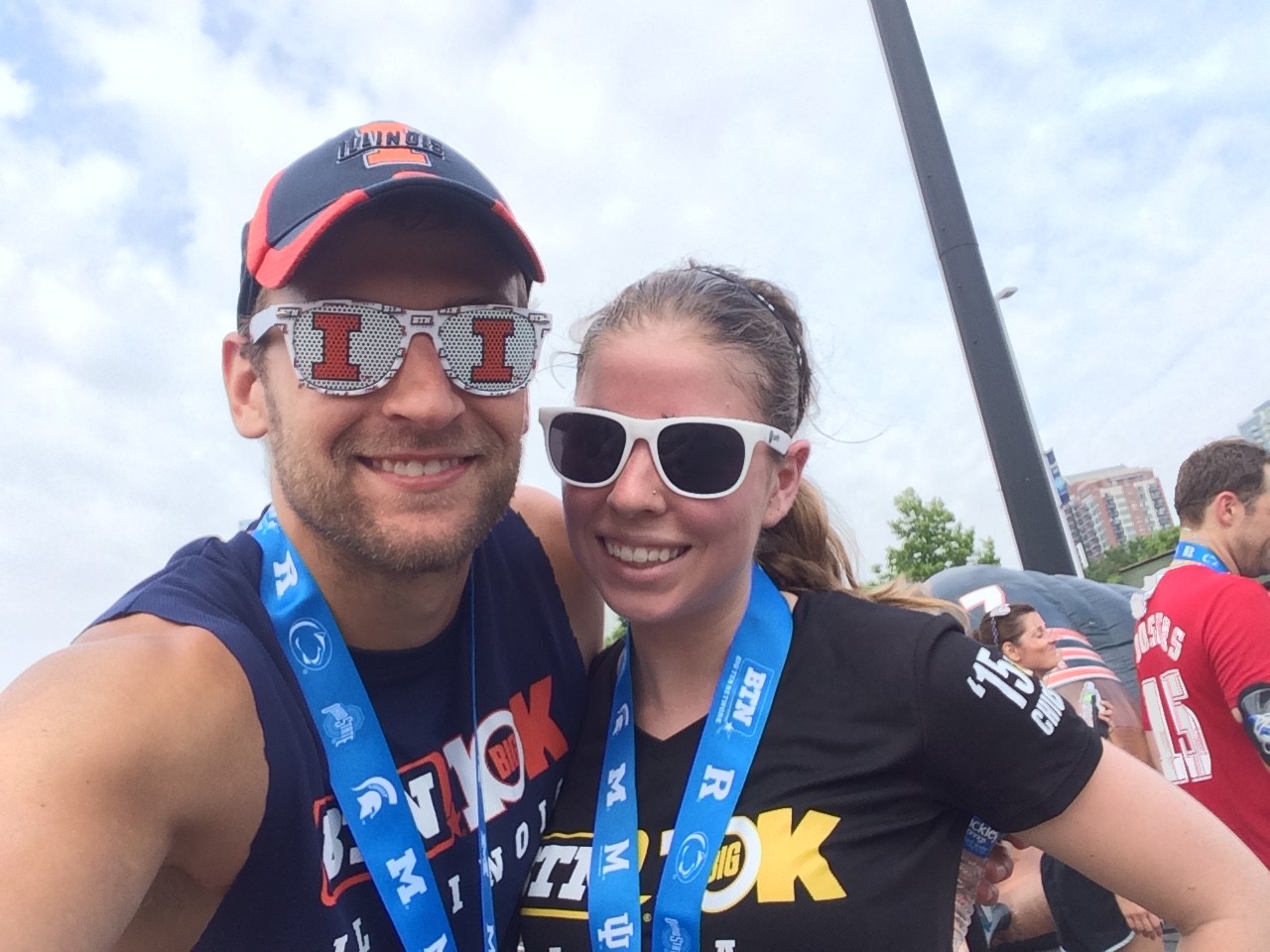 We woke up (too) early to go to Soldier Field for the Big Ten 10k. It was awesome to see all the Big Ten schools represented. I ended up doing the 5k since my knees have been acting up when running lately. After the race, we enjoyed some Goose Island beer, Amylu sausages (the chicken apple and gouda one was amazing), and got some swag from our universities.