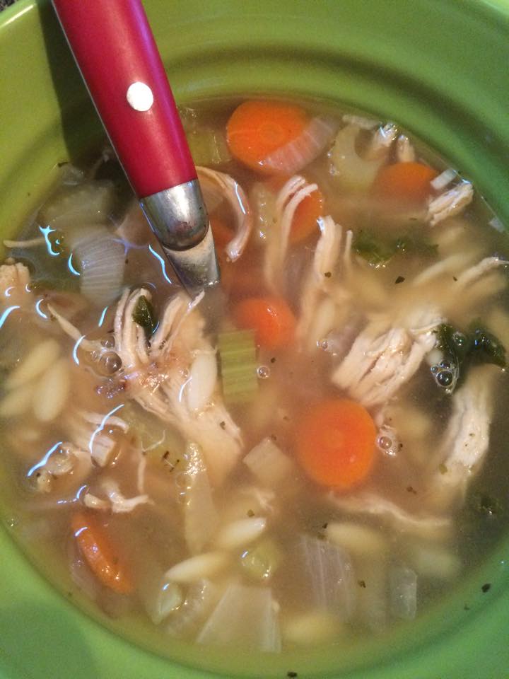 Today was a big cooking day for me. I made some delicious Lemon Chicken Orzo soup after defrosting about three pounds worth of chicken. Here’s the recipe I used, if you’re curious. I love this kind of soup and made enough for a couple meals. Big batches are the key to taking care of a lot of meals with a proportionately low level of effort.