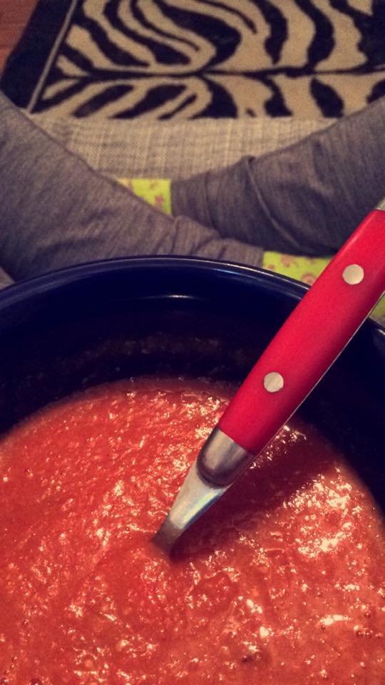For dinner, I made one of my favorite soups, Roasted tomato and garlic (with garbanzo beans). Look for a how-to coming soon on the blog!