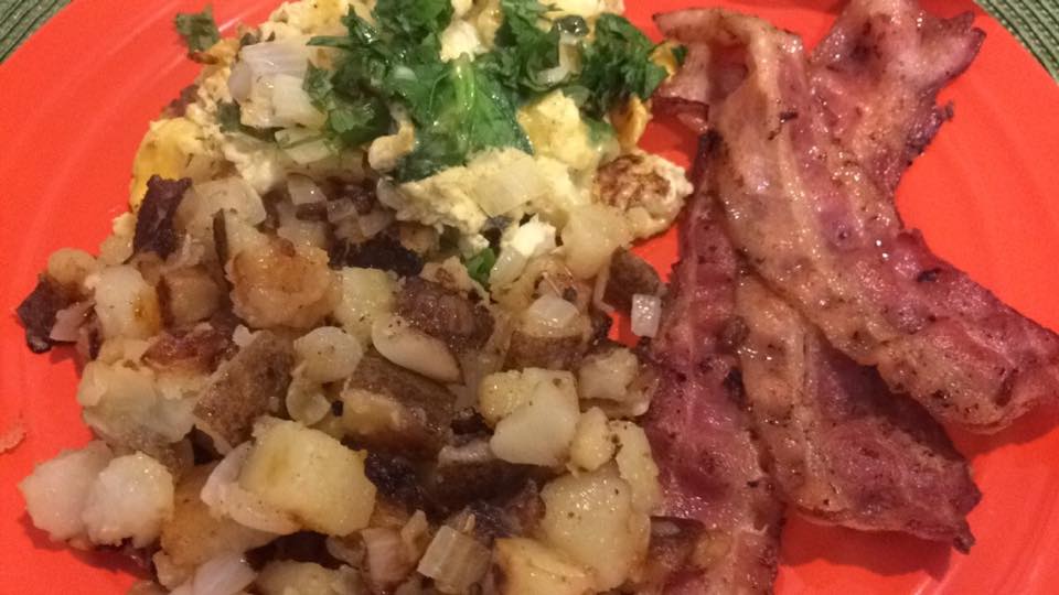 One of my favorite weekend traditions is making a big, bad breakfast. I realized that today was the first time since moving that I actually went through with it! The boyfriend and I cooked up potatoes, eggs, and bacon for a perfect start to the day.