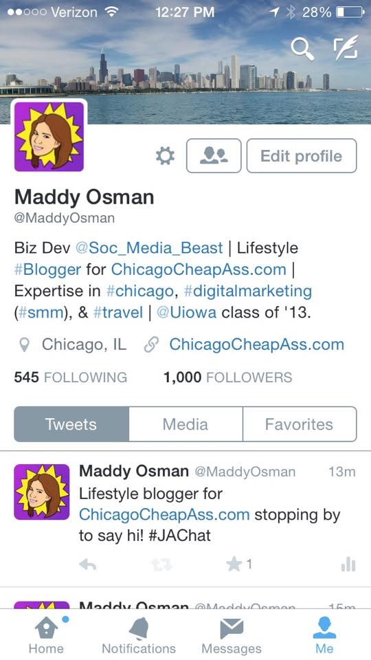 Finally, a personal goal was accomplished today when I hit the 1,000 follower mark on Twitter. Follow me if you’re interested in digital marketing news and (obviously) Chicago events and deals.