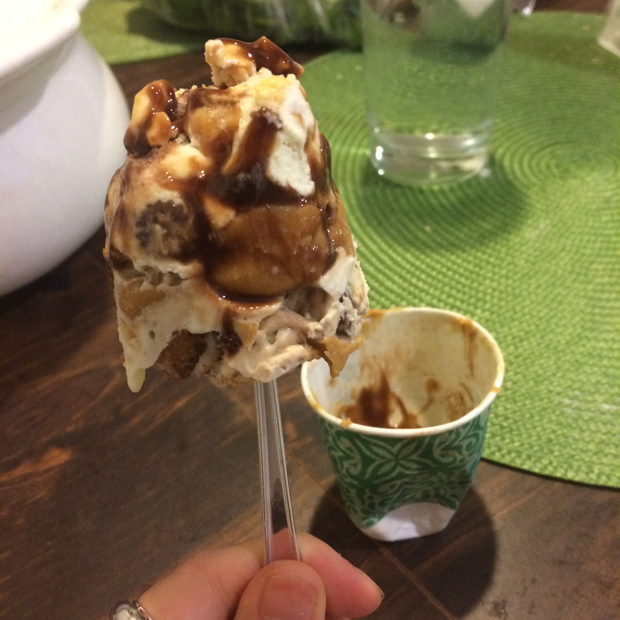 I also made some bad ass peanut butter brittle popsicles. It’s layers of vanilla ice cream, fudge, peanut butter, peanuts, and chopped up Reese’s peanut butter cups. These things are addictive. I shouldn’t have made them. But I had to.