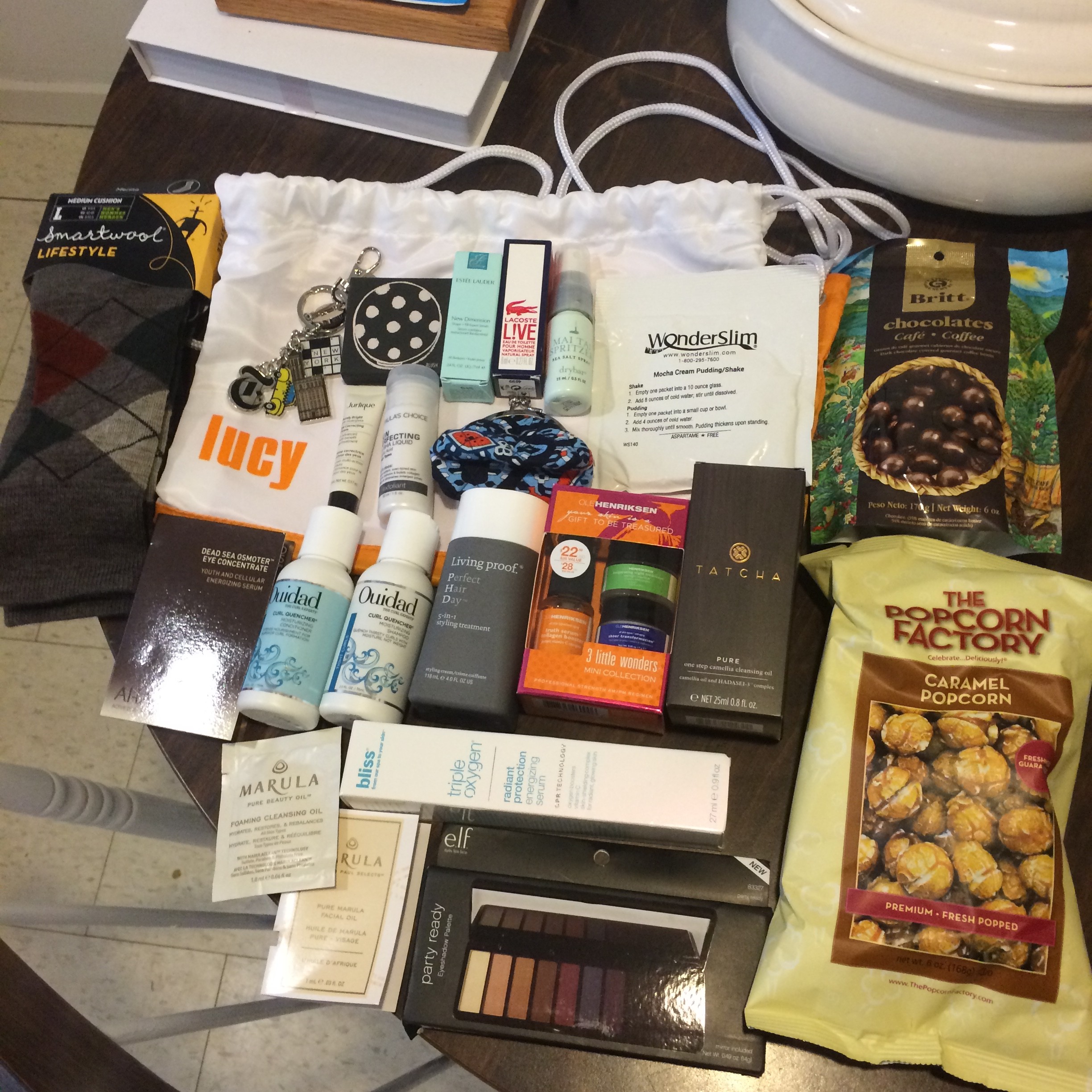 I was relaxing at Native Foods Cafe between getting off work and another event and made good progress on my book (Psycho – a quick and thrilling read). When the cluck struck 6, I made my way across the street to the Rakuten Marketing office. They were holding an event for the Windy City Blogger Collective (WCBC), which I’m a part of. Rakuten is an Affiliate Marketing firm, which means they work with bloggers to help them monetize their blogs by connecting their readers with brands and helping to facilitate sales. I saw my friend Mischaela from Big City Blonde and made some new friends, including Deanna from Chi City Mom! So glad I went, and not just because Rakuten hooked us up with a swag bag featuring products from brands they work with valued at $200 or more! Lots of beauty products, but my boyfriend appreciated the Smart Wool socks and Lacoste cologne.